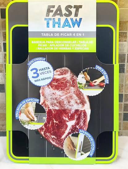 Tabla de Picar, Rallador de especias, afilador de cuchillos y descongela tus carnes 3 veces más rápido gracias a su placa de aluminio.